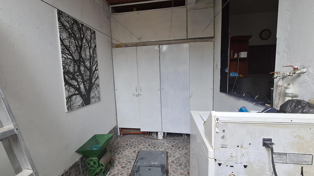 patio de ropas con sitio para dos lavadoras, armario con puertas,
