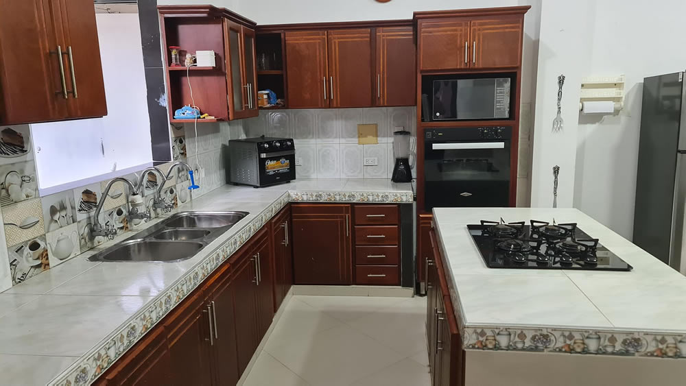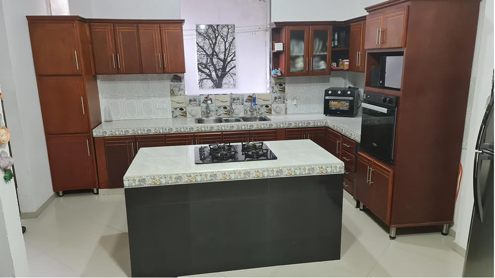 posee ya la araña del baño del tercer piso, garaje doble con portón eléctrico.